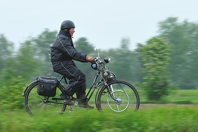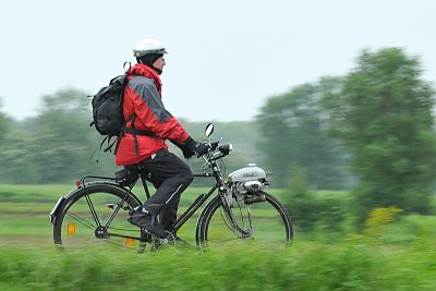 Trotz der Einschränkungen konnten wir bei der Vormittagsrunde 45 Fahrradhilfsmotorfreunde begrüßen. Etwa eine halbe Stunde vor Fahrtbeginn hörte der Regen auf, und zeitweise zeigte sich die Sonne. Erst bei der Nachmittagsrunde setzte 10 Kilometer vor dem Ziel der Regen wieder ein, der uns aber nichts mehr anhaben konnte, zumal die Teilnehmer mit Regenzeug ausgestattet waren. Wir hatten also ein "trockenes" Zeitfenster von 6 Stunden, um die über 50 Kilometer lange Tour zu bewältigen.