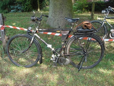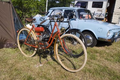 Älteste Maschine war dieser Fahrradmotor unbekannter Herkunft von Matthias (siehe auch Zeitungsbericht vom 29.5.08).