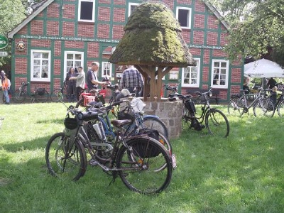 wir möchten uns bei allen Teilnehmern für dieses schöne Wochenende bedanken! Es hat alles gepasst, das Wetter, die Stimmung, die schöne Landschaft. Mit 70 Teilnehmern ging es nach Worpswede zum Niedersachsenstein, und Nachmittags mit fast 60 Hilfsmotoren durch das schöne Teufelsmoor nach Hüttenbusch. Obwohl die Besichtigung des Natur- und Geschichtspfades etwas zu kurz kam, war fast alles im Zeitrahmen. Trotz der hohen Teilnehmerzahl gab es nur 3 1/2 Pannen.